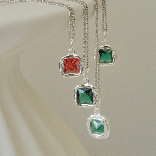 Material: High-Quality Solid Sterling Silver, Emerald & Garnet Gemstone