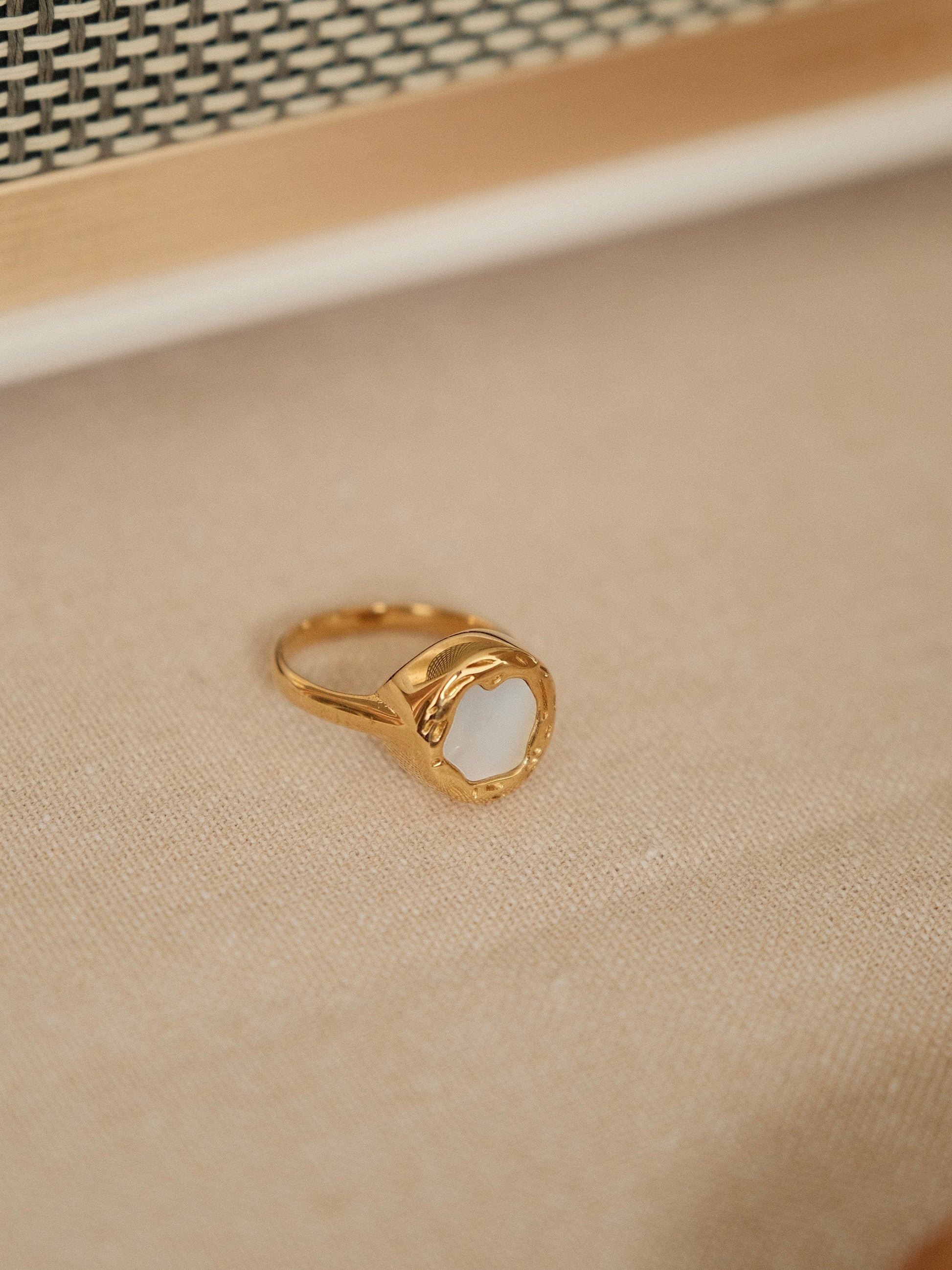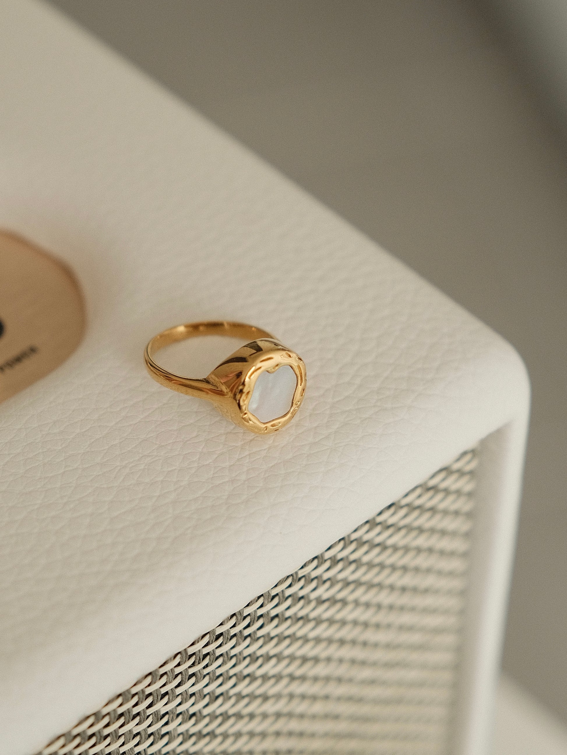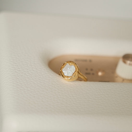 The "Moonshadow Ring" is a captivating piece that echoes the gentle luminescence of moonlight upon the tranquil sea.